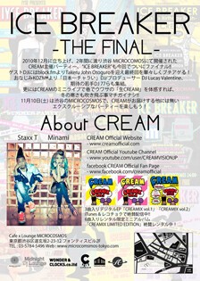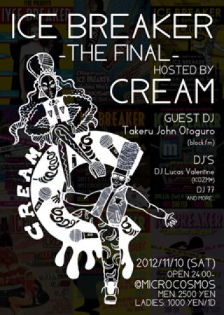 2012年12月から2年間に渡り、渋谷MICROCOSMOSで開催されてきたCREAM主催のパーティ『ICE BREAKER』が、今回、ついにファイナル。ゲストDJにblock.fmよりTakeru John Otoguroを迎え、最終回を華々しくブチアゲる! さらに、CREAMファンにはおなじみ、KOZM?より“日本一チャラいDJ」ことDJ/プロデューサーのDJ Lucas Valentine、期待の若手DJ 77なども集結。