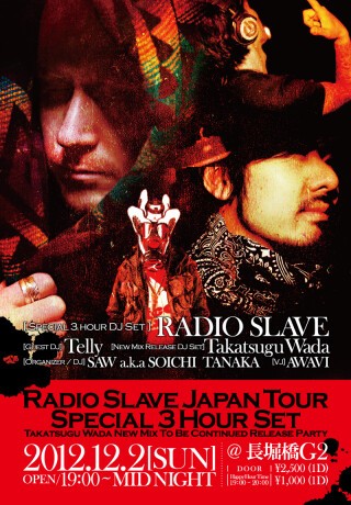 12月2日、長堀橋@G2にて久々の来阪を果たすドイツのトップアーティスト"Radio Slave"を招聘してTakatsugu Wada New Mix Release Partyを開催。