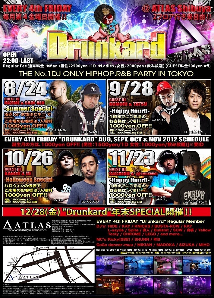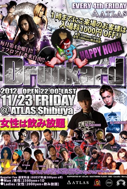1/23[金]女性に大好評!!飲み放題のHIPHOP PARTY "Drunkard"-Happy Hour-@ATLAS 渋谷