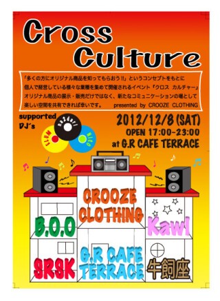 CROOZE CLOTHING(アパレル) Kawl(ハンドメイドアクセサリー) SRSK(アルミ加工) B.O.O(ガラスアンティーク 牛飼座(詩書家) ACT DJ ELME