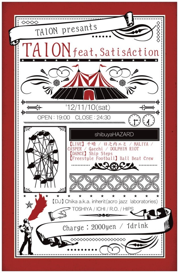 今回の【TAION】は『らしく』『似合ってる』=カッコイイをテーマにStarting PARTYでも、その妙技を披露してくれた横田陽介率いるBall Beat Crewの主催イベント「SatisAction」が参戦!!!