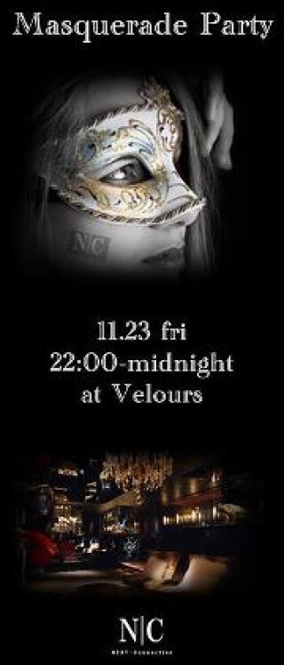 11/23(金・祝)3連休の初日、Veloursにて”仮面舞踏会”マスカレードパーティーを開催します。