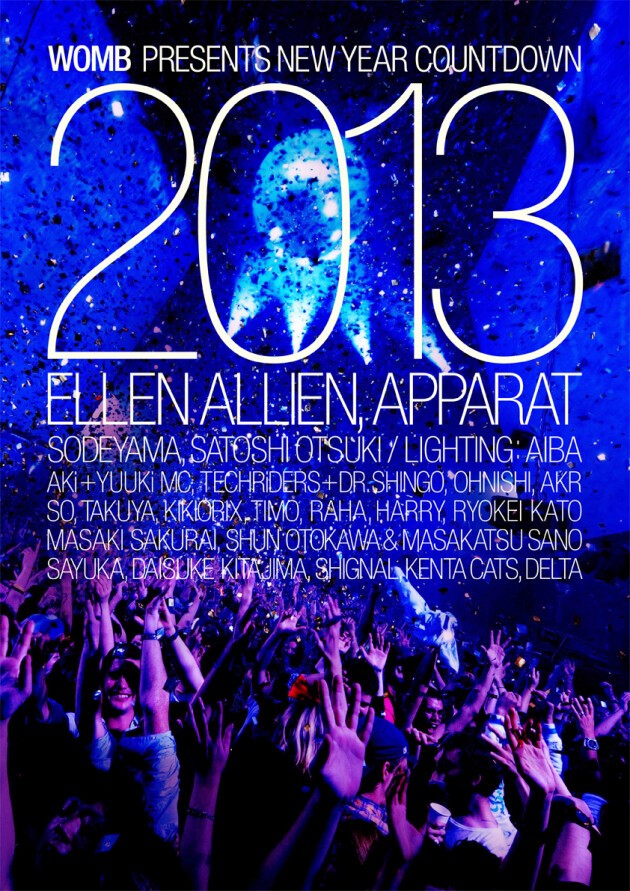 2012年を締めくくるWOMBカウントダウンは、世界屈指の女性アーティスト ELLEN ALLIEN と、Modeselektor とのユニットModeratとしての活動でも知られる、奇才APPARATの2人が豪華に登場! ELLEN ALLIENはベルリンを拠点にし、プロデューサーそしてレーベル"BpitchControl"のオーナーとして幅広い活動を繰り広げるアーティストであり、近年ではイビザの人気パーティーCIRCO LOCOなどにも招かれでプレイし、世界的に絶大な人気を保持させている。奇才と呼ばれるAPPARATは彼もベルリンを拠点にするアーティストであり昨年、UKの老舗レーベルMUTEから約4年振りとなるニュー・ アルバム『The Devil’s Walk』を発表。自身の作風となるエレクトロニカ・テクノ・ サウンドに加えてダブステップ的な要素も取り入れ、フォーテット等に代表されるエレクトロニカ・テクノ系のアルバムの代表作とされている。2人に加えてWOMBレジデントの出演もあり、世界に評価されるWOMBらしいカウントダウンPARTYになる事間違い無し!