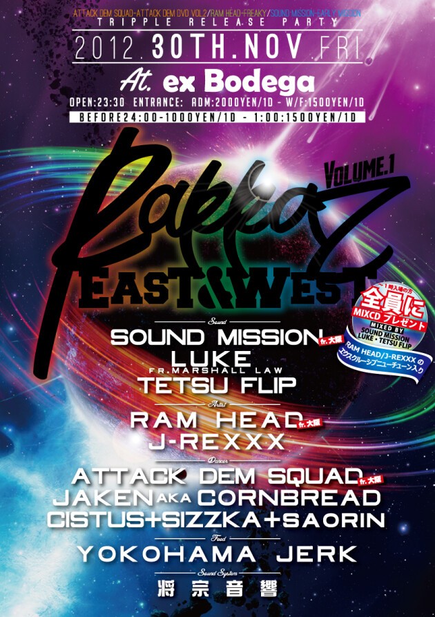 1:00までに入場の方全員にRAM HEAD、J-REXXXの新曲入りMIX CDプレゼント。mixed by SOUND MISSION×LUKE×TETSU FLIP