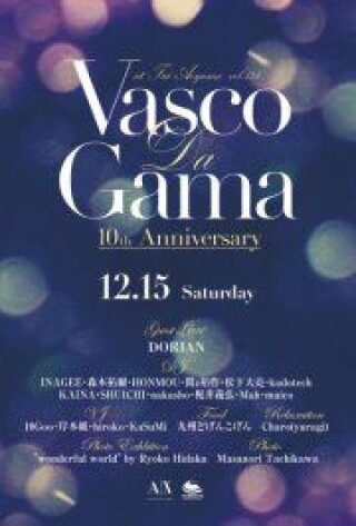青山faiの第3土曜日の夜を盛り上げ続けてきたVASCO DA GAMAも遂に開催10年を迎える。様々なクラブ、ジャンルで長いキャリアを持つDJ陣が集い、それぞれの経験を活かした選曲で、特定音楽ジャンルにとどまらない、誰もが楽しめるパーティーを確立。