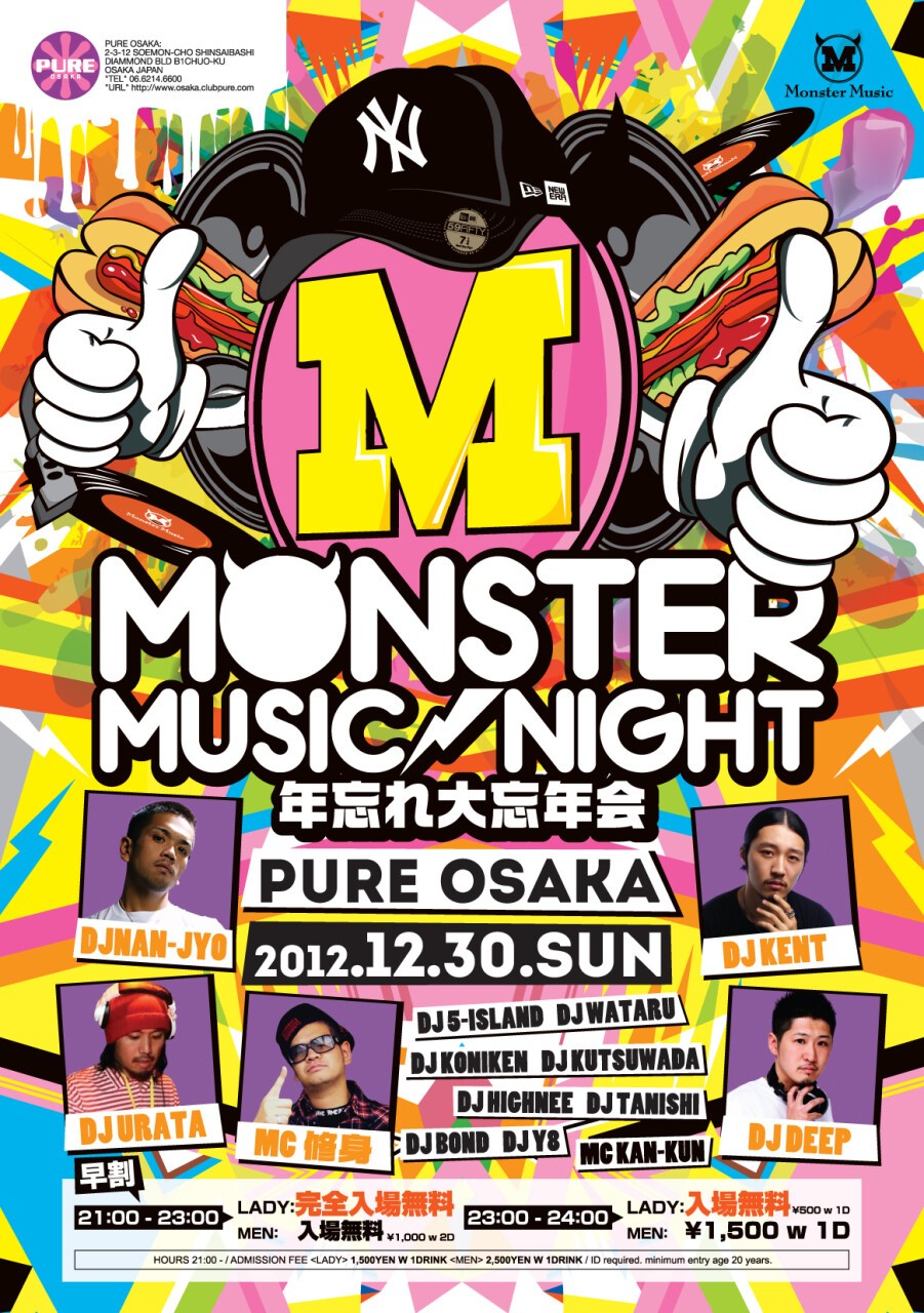 MONSTER MUSICは30日、【MONSTER MUSIC NIGHT】としましてPUREで大忘年会をやっちゃいます!