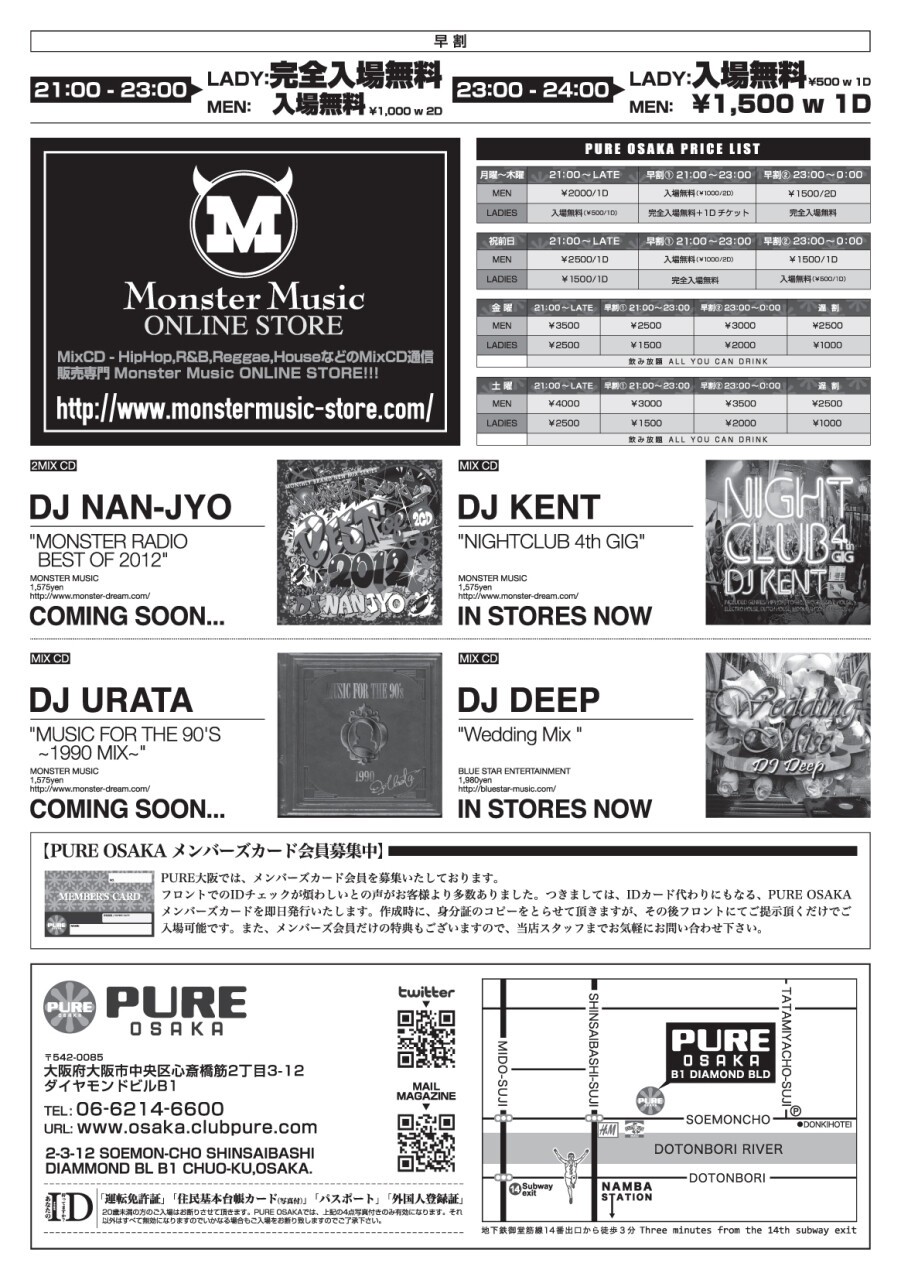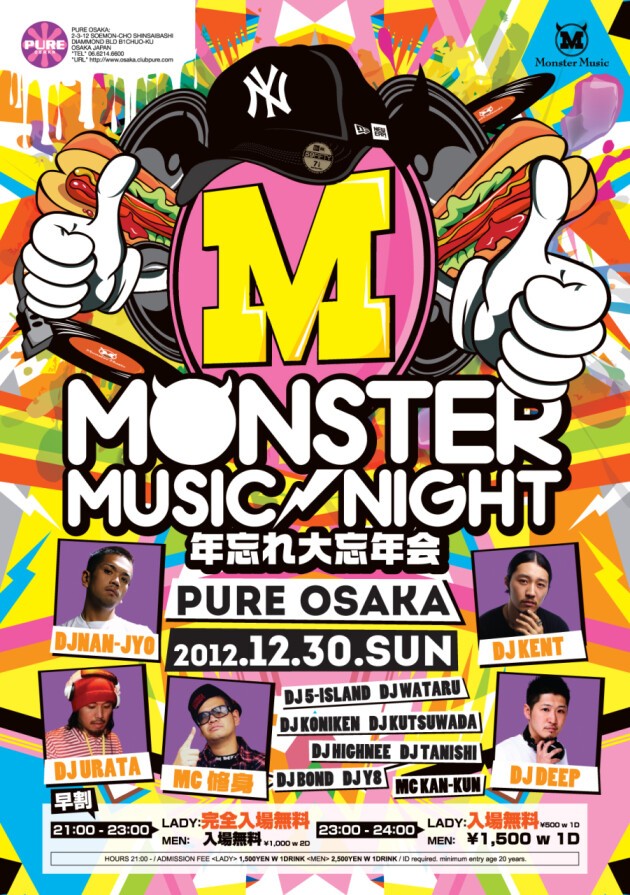 場所もPUREと言う事でお酒が飛び交うのは必至!1日早いですが、2012年のパーティー納めをPUREの【MONSTER MUSIC NIGHT】で過ごしませんか?