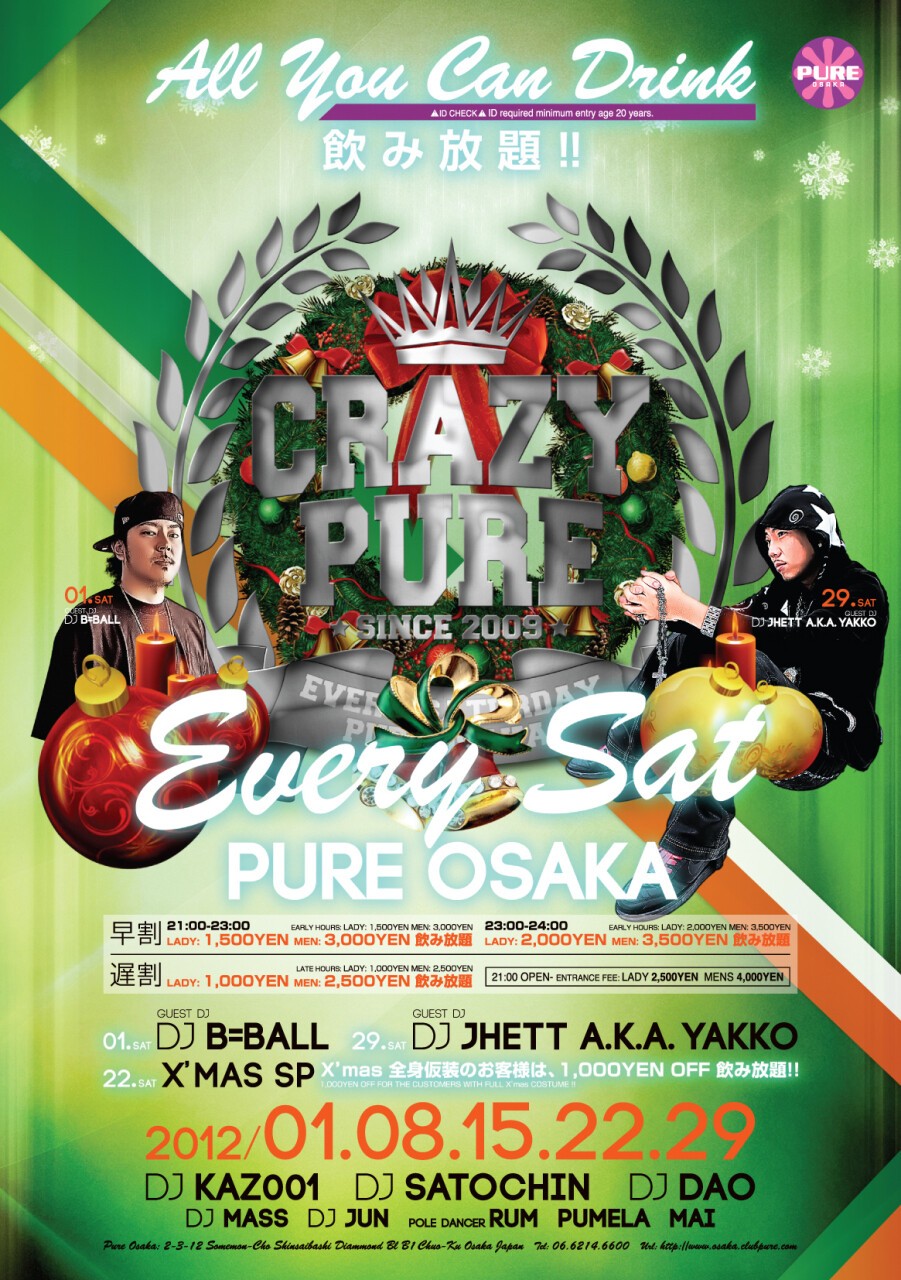 毎週600人オーバーで満員御礼のPUREの土曜日『 CRAZY PURE 』!!