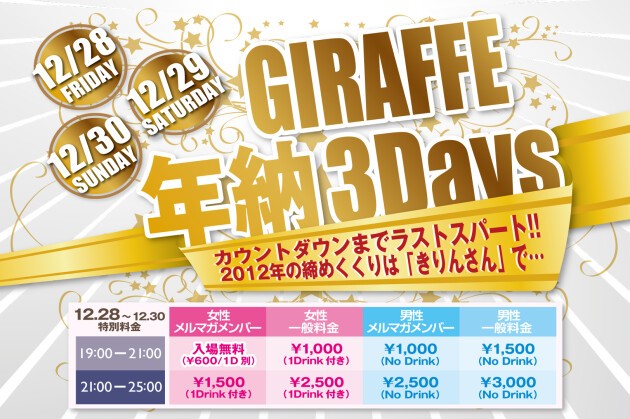 【21:00-01:00】女性1500円1D付|男性2500円NoDrink