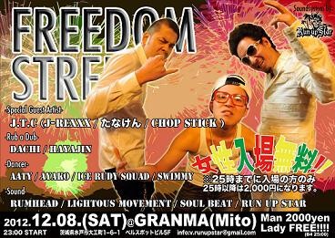 毎月第2土曜日はReggaeの日!偶数月はFREEDOM STREET。12月の今回はゲストにJ.T.C!!!