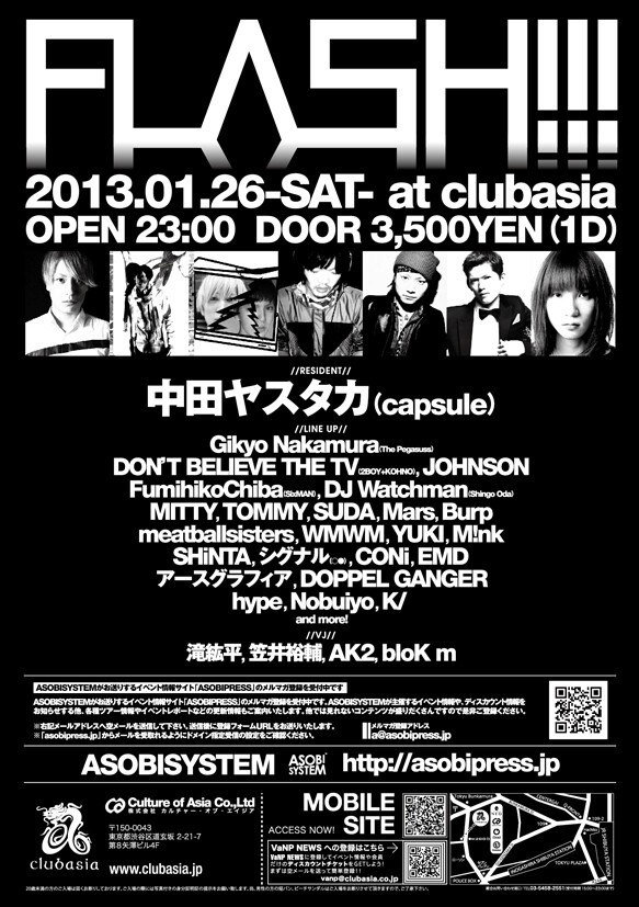 CLUBシーンからJ-POPシーンを超え世代を超える、シーン最先端のサウンドを提供し続ける中田ヤスタカ(capsule)が贈る週末唯一のRESIDENT PARTY "FLASH!!!"