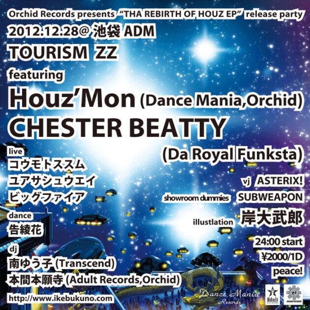 2012年最後のツーリズムはシカゴからDJ Houz'Mon、日本からはCHESTER BEATTYが久々の登場です!
