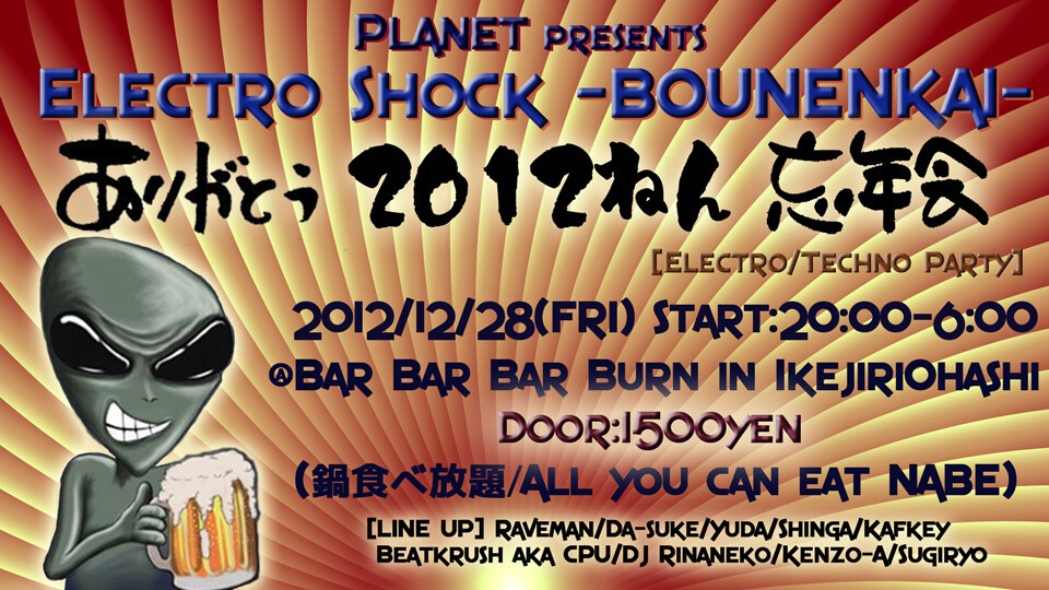 Door(会費): 1500yen (鍋食べ放題/All you can eat Nabe!!)