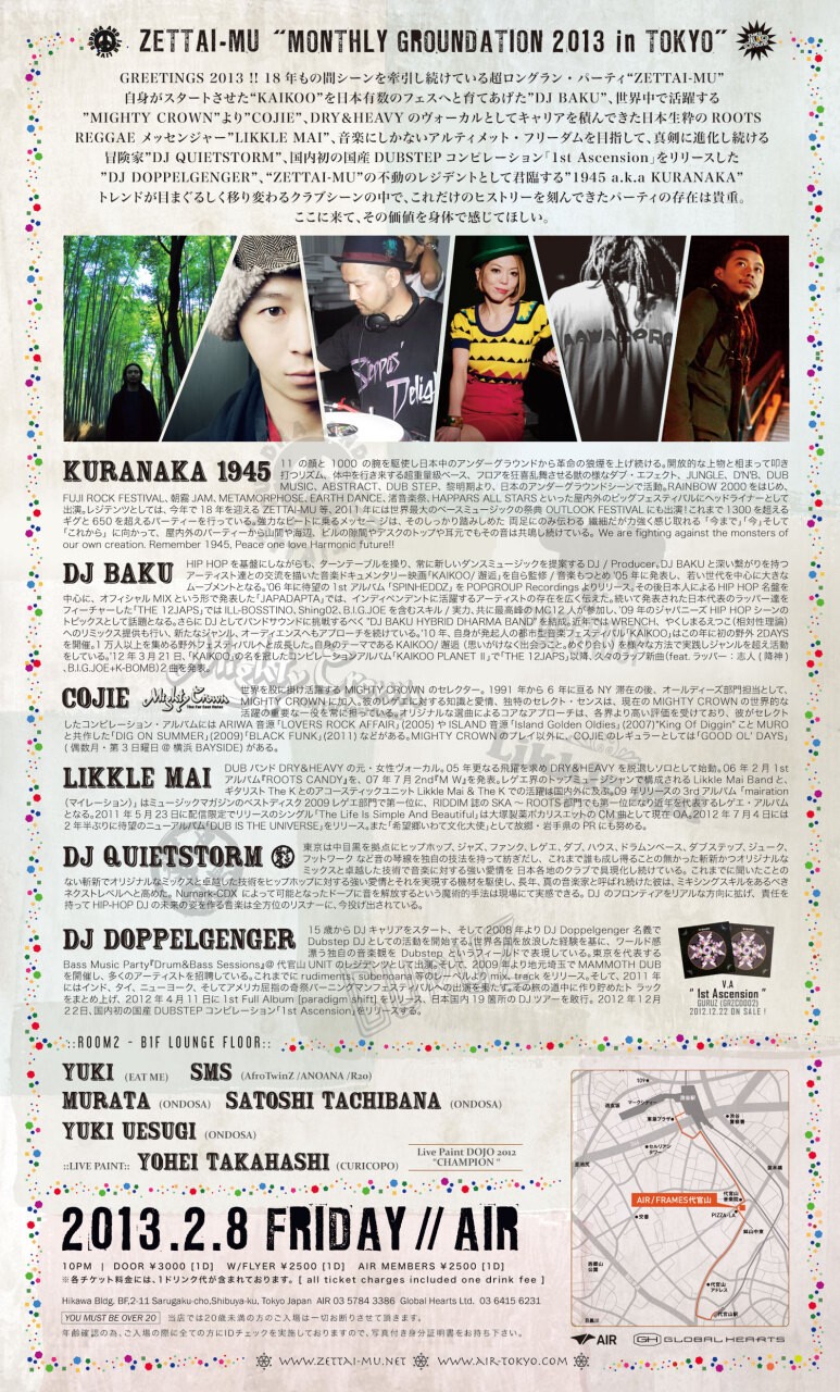 18年もの間シーンを牽引し続けている超ロングラン・パーティ“ZETTAI-MU”のMonthly Groundation in TOKYO!!