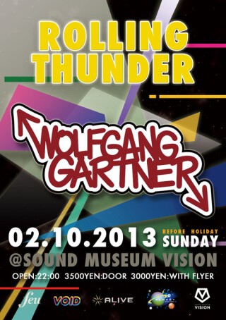 現在急速に人気を集めるEDMを中心に今が旬のワールドワイドに活躍するアーティストを招致しするパーティ”ROLLING THUNDER”がVISIOで初開催される。その記念すべき1回目のゲストはWOLFGANG GARTNERが登場。EDMシーンの重要人物 Skrillex、 Deadmau5などとも共作を送り出すだけではなく、自身の作品もBEAT PORTのチャートでNo.1に。遂にはグラミー賞ではベストリミキサーとしてノミネートされるまでと一気にスターダムを駆け上がっている今、絶対に見逃 せないパーティといえよう。他にもブレイク寸前のジャパニーズEDMユニットTINYDUCKSを筆頭に国内アーティストも要注目だ。