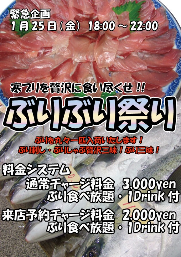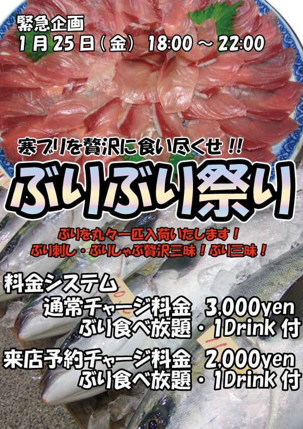 ぶり刺し・ぶりしゃぶと贅沢三昧・ぶり三昧!