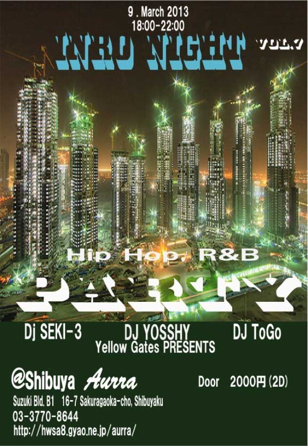 Yellow Gatesがお送りするINRO Nightが3/9(Sat)に開催!!