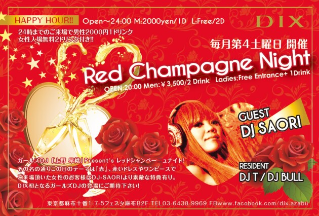 Girls DJ「上野早織」Presentsレッドシャンペーニュナイト!