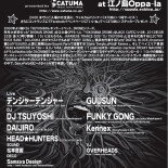 DJ にはもちろん、JAPANESE TRANCE GOD 「DJ TSUYOSHI」と日本を代表するELECTRO ROCK BAND 「JOUJOUKA」のギタリストでもある「FUNKY GONG」。横浜を代表するParty「DIGITAL BLOCK」Organizer兼DJの「DAIJIRO」と更に湘南UnderGround Partyで活躍する「Stone Temple」からは「Kennex」、そしてベイエリア筆頭「HEAD★HUNTERS(DJ TSU→ & DJ TAKA)」の出演が決定!!