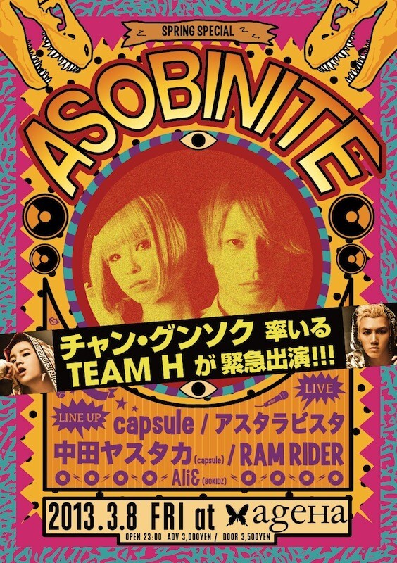 3月8日(金)に新木場ageHaにて開催される「ASOBINITE!!! -SPRING SPECIAL-」に、急遽スペシャルゲストとしてTEAM Hの出演が決定した。