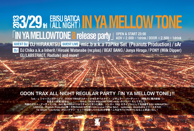 記念すべき第2回目は、、、、、なんと「IN YA MELLOW TONE vol.8」のリリパ!そしてそして、