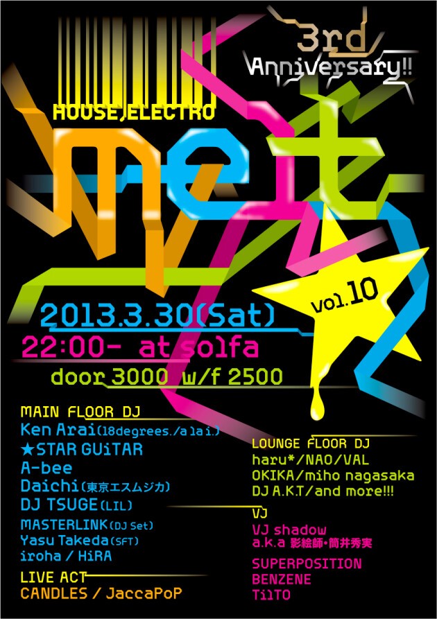 Ken Arai(18degrees./a la i.),★STAR GUiTAR,東京エスムジカのDaichi,A-bee,LIL のレジデントDJとVJたち。