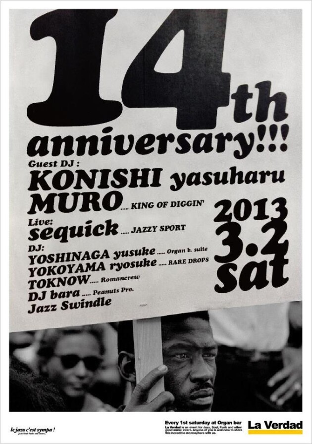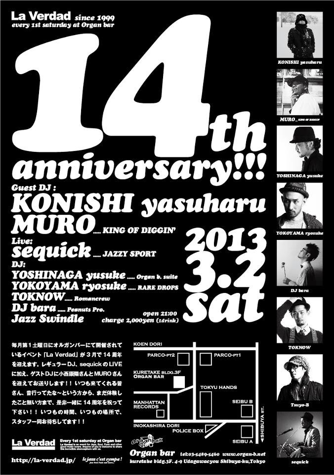 渋谷Organ bar 毎月第1土曜日のイベント”La Verdad”が3月で14周年を迎えます。是非一緒にお祝い下さい!!