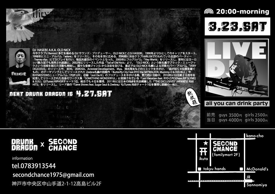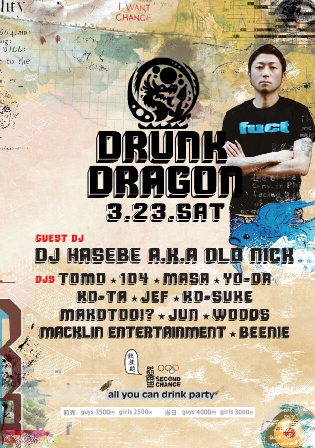 飲み放題で東京からゲストDJにDJ HASEBEが!!