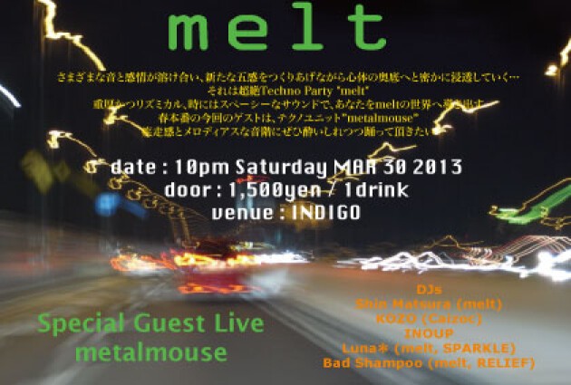 そして、2011年7月より、超絶テクノパーティー「melt」を始動し、妥協のない音を展開。