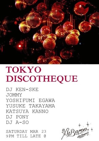 ディスコ、ファンク、ヒップホップ、ハウスを織り交ぜ、春の夜風と共にダンサブルなTOKYO DISCOTHEQUEの夜をお楽しみ下さい!!