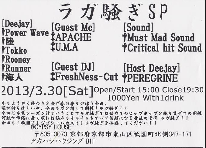 今回も!祇園で!ジプシーハウスで!ラガ騒ぎを体感してください!!