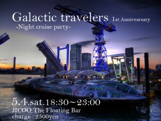 宇宙戦艦ヤマトでも有名な漫画家、松本零士デザインシップ”JICOO The Floating Bar”7色に光る宇宙船が 日の出桟橋~お台場海浜公園を30分毎に行き来しており、船内では、海抜0メートルの動く東京湾の夜景と、 渚チャンネルのチャンピオンであり代官山AIR等で活躍中のDJ 宝鮨を中心に オシャレで心地よいダンスミュージックがお楽しみいただけます。