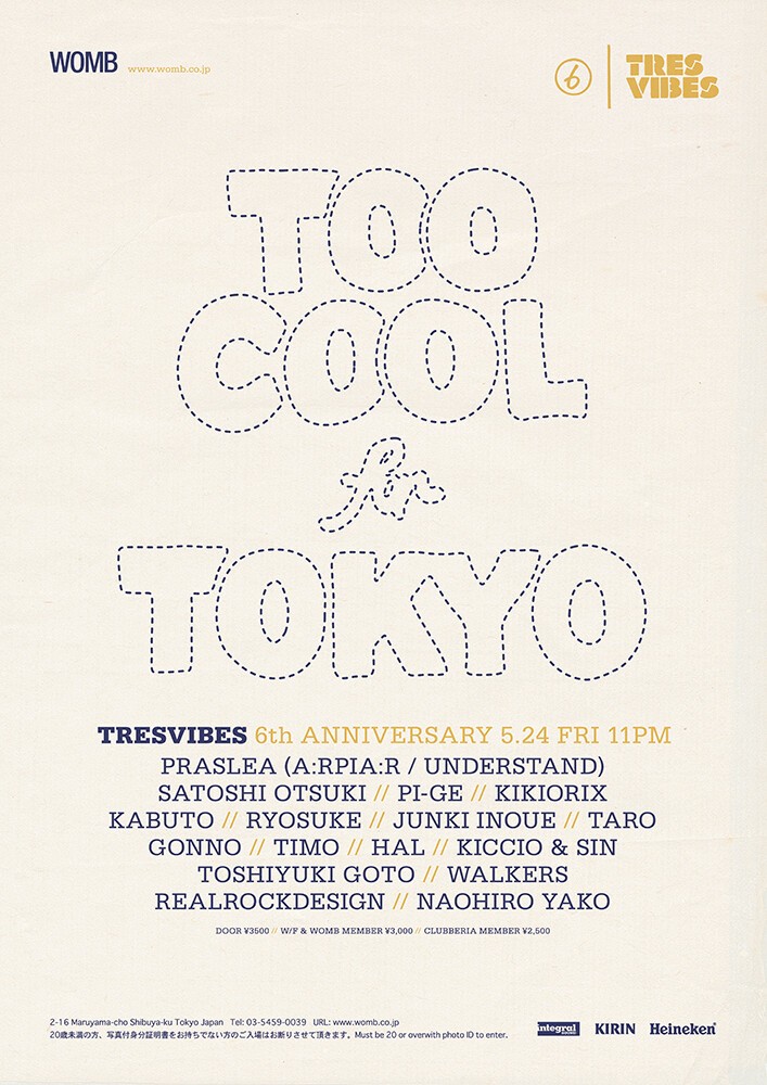 5th Anniversary 以降、”Too Cool for Tokyo”をコンセプトに掲げ、会場をシークレットとした”BY KEY”や、シーサイドパーティー”BY SEA”というプロジェクト等を企画してきたTRESVIBES。