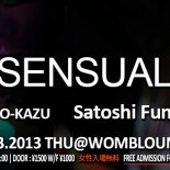 ディープテックハウスをキーワードに、Owl、Deptech、Satoshi Fumi、Elektron 等の名義のもと世界レベルで活躍し、注目のリリース曲が絶えない注目の日本人テックハウス・プロデューサー。Satoshi Fumi のレギュラーパーティーが WOMB LOUNGE にて開催決定!レジデントには TROUBLE HOUSE にもレギュラーとして参加している OO-KAZU を加え、都内各所で活躍するアーティストと共にディープテックハウス旋風を巻き起こす!WOMB LOUNGE ならではの密度の高い空間での Satoshi Fumi のプレイは必聴必見。2年目に突入しさらに進化したSENSUALのグルービーでフレンドリーな空間をぜひ体感して欲しい!