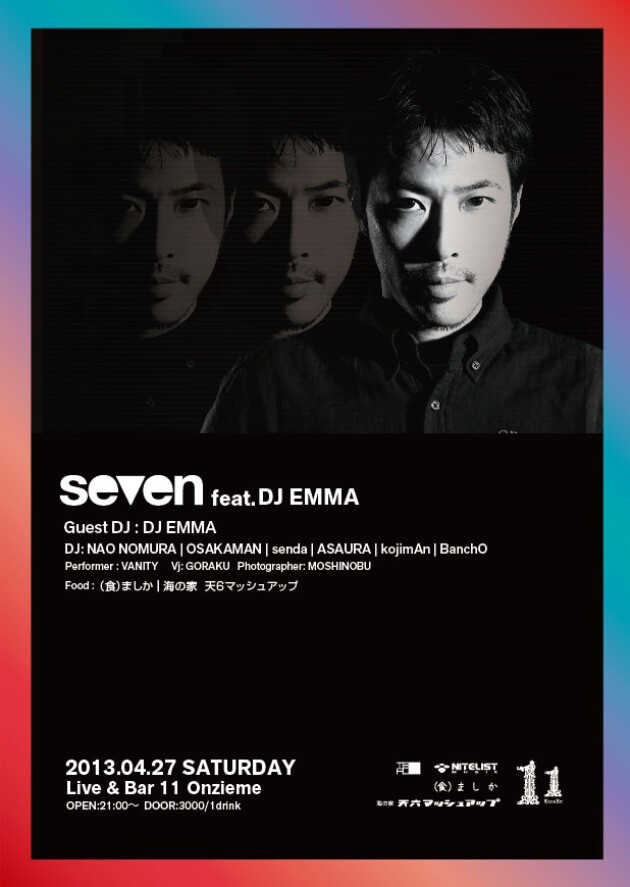 DJ EMMAのエモーショナルなDJはsevenクルーとの相性も抜群で、過去2回の出演においてもミラクルな盛り上がりをみせ、平日から終電を逃す人が続出!今回は土曜日と言う事でこれまで以上に盛り上がる事は必至!