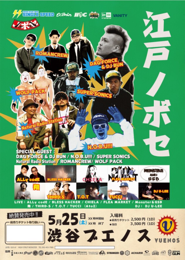 東京在住の九州人、福岡人の皆様が集まって交流を持てる場として、また久々に九州、福岡の風を感じてもらえる場として、福岡ならではのGOOD’S販売や出店も企画中、勿論音楽に、出会いにと、『渋谷を一日福岡で染める!』それが『江戸 NOBOSE』です。