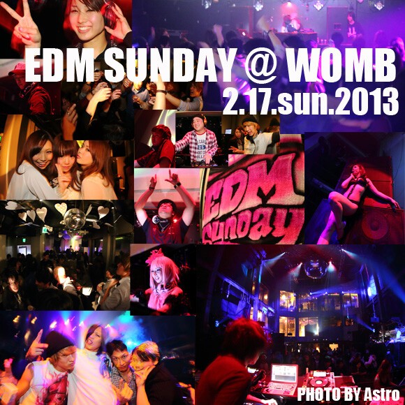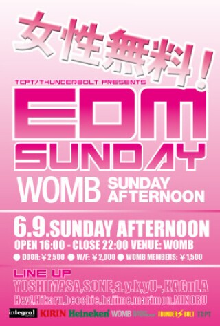 最新のEDMから誰でも知ってる大ヒット曲まで日曜の夕方16時から22時までの6時間 日本最大級のWOMB SUNDAY AFTERNOONで盛り上がろう!