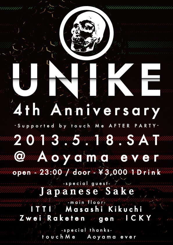 2013年5月18日、グレゴリオ暦で年始から138日目(閏年では139日目)にあたり、年末まではあと227日あるこの日に、渋谷clubasiaにて総勢700人以上の動員を記録し、トーキョークラブシーン最重要イベントの一つとしての地位を築き上げたUNIKEの4th Anniversaryの開催が決定。