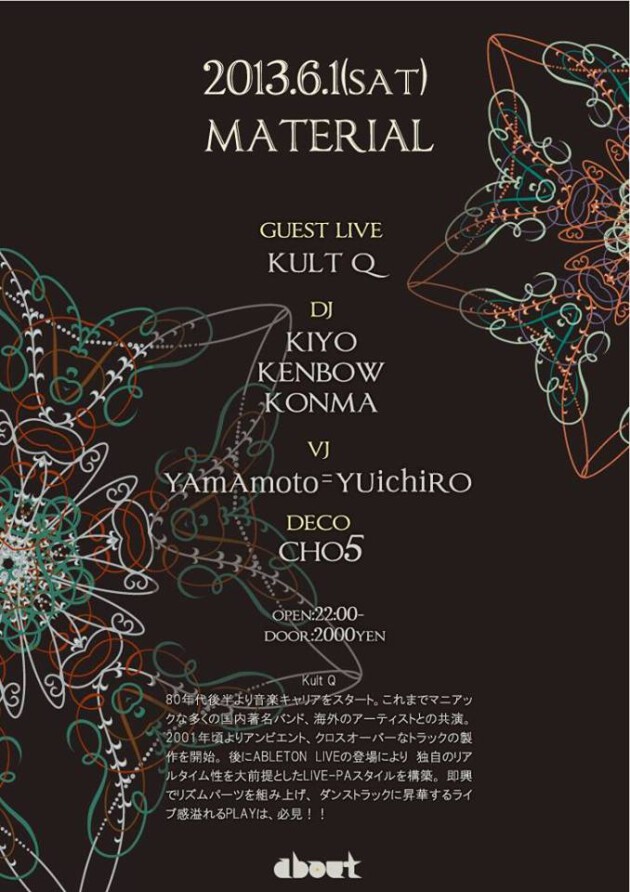 80年代後半より音楽キャリアをスタート。これまでマニアックな多くの国内著名バンド、海外のアーティストとの共演。2001年頃よりアンビエント、クロスオーバーなトラックの製作を開始。 後にABLETON LIVEの登場により 独自のリアルタイム性を大前提としたLIVE-PAスタイルを構築。 即興でリズムパーツを組み上げ、 ダンストラックに昇華するライブ感溢れるPLAYは、必見!!