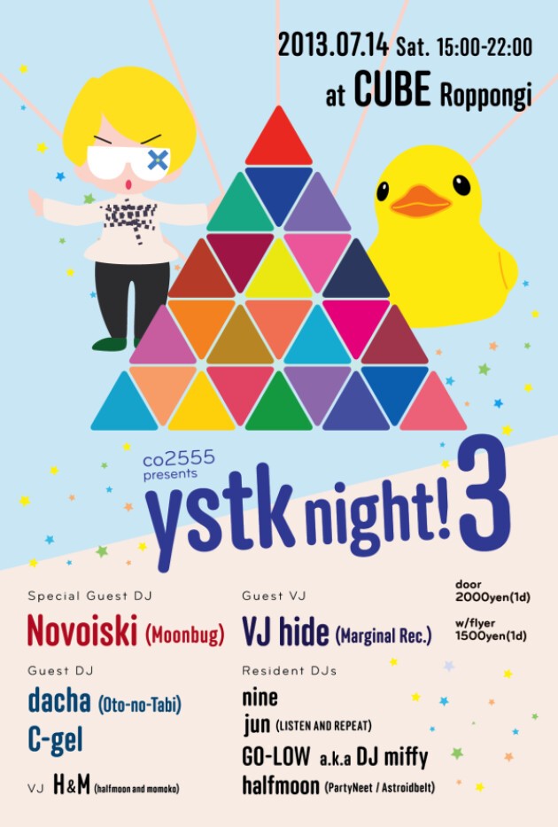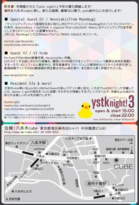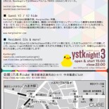 昨年7月初開催された『ystk night!』、今年の夏も開催します!場所を六本木cubeに変え、新たな展開、豪華なDJ陣でystk曲中心にお送りします。