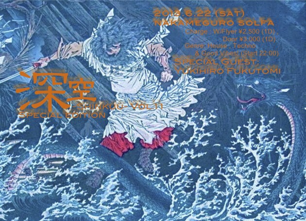 今回はSpecial Guest として 福富幸宏 を迎え、Regular DJであるNozaとPOKHARAとNEWOLD、Support Djsと共に、「深空」は『House Music』をテーマに、各々のDJが独自の解釈にて身体揺さぶる音空間を創ります。