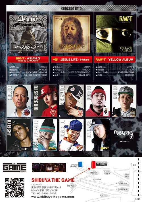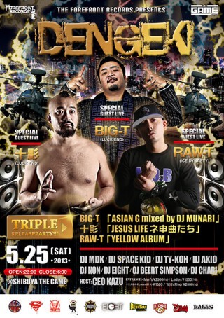 SPECIAL GUESTに4/24にALBUM「JESUS LIFE ネ申曲たち」をリリースした十影、5/22にALBUM「YELLOW ALBUM」をリリースしたRAW-T、同じく5/22にMIX CD「ASIAN G mixed by DJ MUNARI」をリリースしたBIG-Tのトリプルリリースパーティとなっております!!!