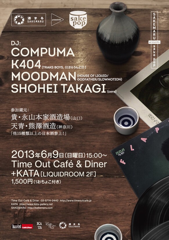 嗚呼、これは良い。リラックスド&チルな娯楽ドリンク最高峰、良さの塊、まさに人生狂わす、ニクいやつ、その名は日本酒。初夏の気持ちの良い、日曜午後にお届けする日本酒チルアウトな新機軸パーティ“sake pop”。リキッドルーム2階のTime Out Cafe & DinerとKATAにてスタート! 日本酒をこよなく愛する会“酒丸”セレクションの各地の酒蔵さん協力な元、さまざまな日本酒を集めてレッツラー・ パーティ。もちろん、うまい酒にはうまいアテ。ということで、アテその1は、音楽。抜群のDJたちが用意するは、極上の国産もの(和製ポップス〜ソフトロック〜ムード歌謡〜演歌などなど)。さらには、アテその2は、もちろん舌を日本酒とともに楽しませる小粋なおつまみも。DJはMOODMANとCOMPUMAという、ご当地ではおなじみ、酒も音楽も、そのうまみも辛みも知り尽くしたのんべえおじさんふたりに、その独自のポップ・センスで大人気のceroからSHOHEI TAKAGI、CRYSTALとのDJユニット、TRAKS BOYSやセカンド・アルバムも近くリリースされる(((さらうんど))))の、K404が登場。お帰りは千鳥足にて、御足下にご注意くださいませ〜。(河村祐介)
