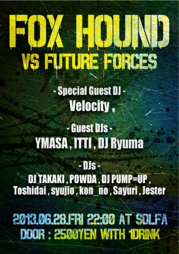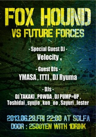 FOX HOUND1周年となる今回はゲストにVelocity、そして若手Drum'n'BassイベントであるFUTURE FORCESを迎えてお送りします。