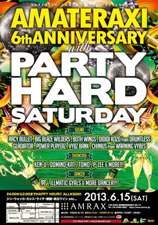 6周年を迎えるamate-raxiのアニバーサリーを祝し、毎週火曜は心配無用のBIG PARTYが週末に開催!!