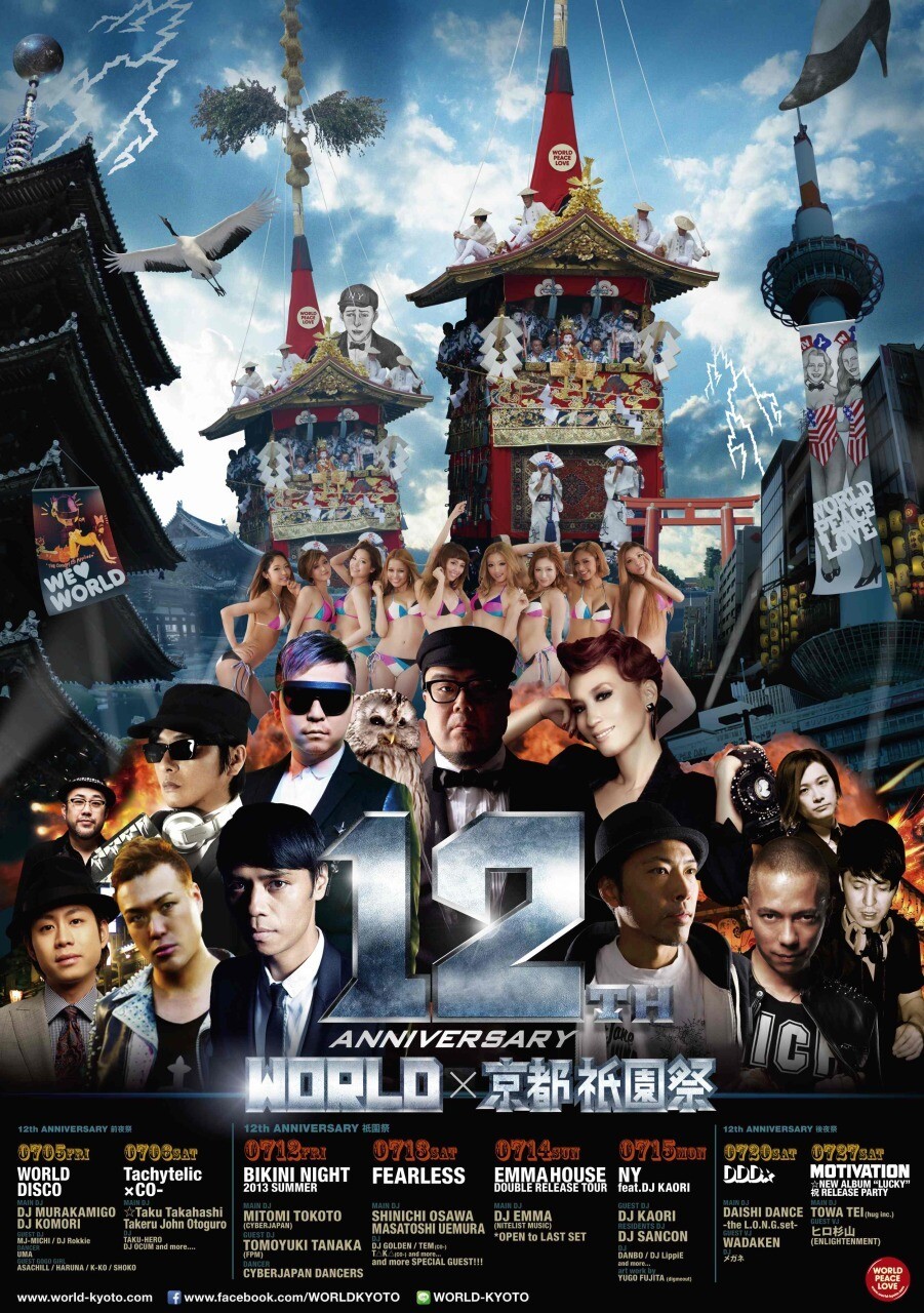 WORLDの12周年は7/12~7/15の4DAYSに渡り開催、京都祇園祭と重なり盛大なパーティーの連夜!