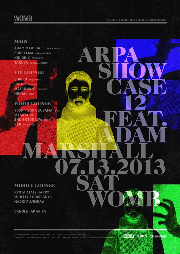 LINE UP: ADAM MARSHALL (NEW KANADA), SODEYAMA (ARPA RECORDS), KIKIORIX (TRESVIBES), TAKUYA (SURVIVAL DANCE)