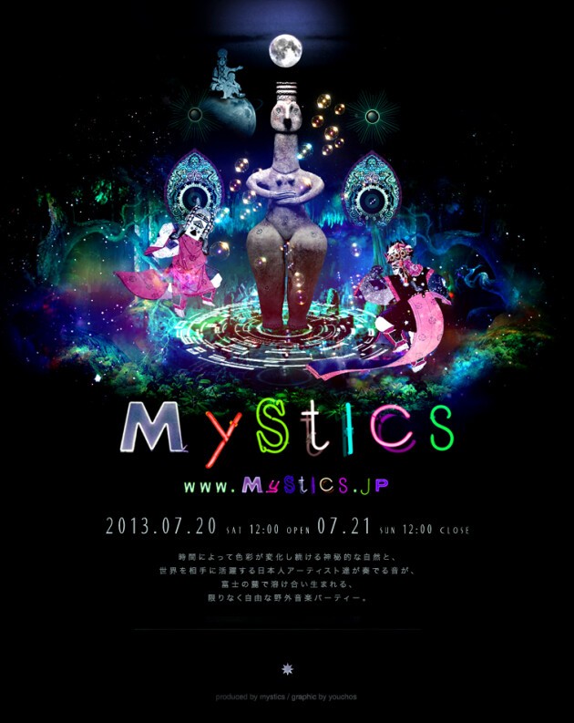 限りなく自由な野外音楽パーティー「Mystics」が7月20(土)から7月21(日)、静岡県朝霧ハートランドにて開催される。