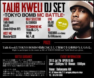 「TOKYO BOMB」を開催を記念してTalibKweliと楽曲を製作中、制作楽曲の一人に今回MCバトルを開催し優勝者にはMCの権利が与えられる。