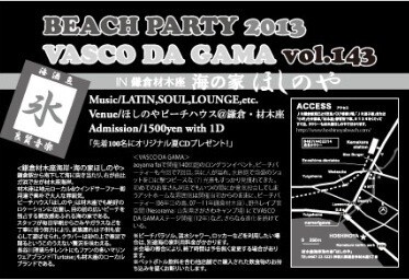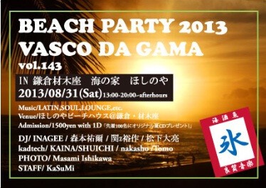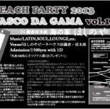 aoyama faiで開催11年目、140回を超えるロングランイベント。ビーチパーティーも今回で7回目。浜に人が溢れ、水鉄砲で泡盛のショットを口に撃つピースな(?)光景もすっかり見慣れてきた。初めてのお客さん同志でもいつの間にか意気投合してしまうアットホームな雰囲気は開催当初のまま、ビーチパーティー(06年江の島、07-11年鎌倉材木座)、野外レイブ音空間nesorama:山梨県さがさわキャンプ場でVASCO DA GAMAステージ開催(12年)など、さらなる進化を続けている。